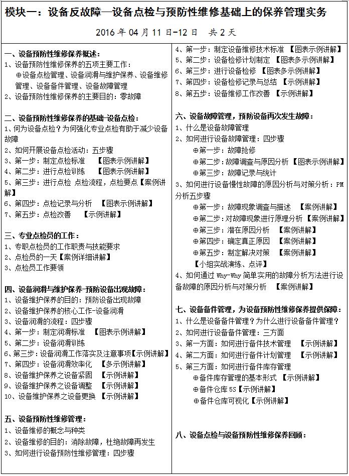 随着现代科技的不断进步,企业的设备占企业资产的比重越来越大,但是许多企业的员工对设备的点检、维护和检修能力却没有同步增长,这样设备故障率居高不下。于是,面对维护、检修这些先进装备的要求就越来越高的时候,提升员工设备现场点检、预防性维修保养能力的需求就日渐突出。